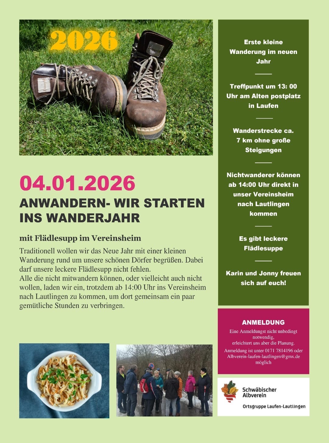 Alle, die nicht mitwandern können, oder vielleicht auch nicht wollen, laden wir ein, trotzdem ab 14 Uhr ins Vereinsheim nach Lautlingen zu kommen, und dort gemeinsam ein paar gemütliche Stunden zu verbringen.