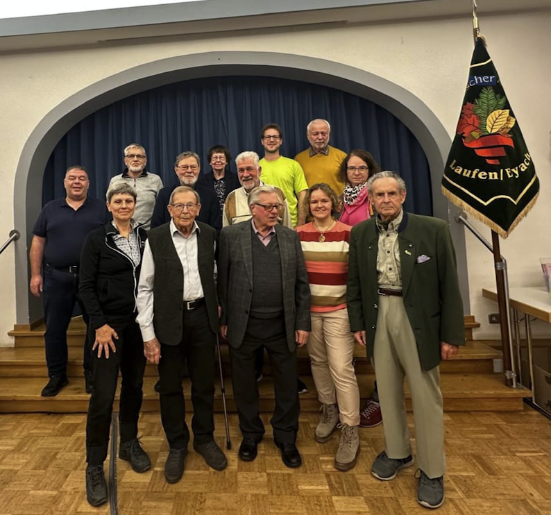Ein besonderer Moment der Versammlung war die Ehrung langjähriger Mitglieder. Ursula Scholz, Martin und Birgitt Frohme, Heinz-Peter Welz, Norbert Glück und Alfred Moos erhielten Ehrennadeln. Gustav Scholz wurde für die Vielen Jahre die er im Ehrenamt für den Albverein stand, die Ehrenmitgliedschaft verliehen. Walter Glück wurde als Wertschätzung für seine Verdienste für die Ortsgruppe Laufen als Ehrenvorstand benannt. Das war den Anwesenden einen Applaus wert.Das Bild zeigt die neu gewählte Vorstandschaft, sowie die geehrten Mitglieder.Bild und Text Schulz