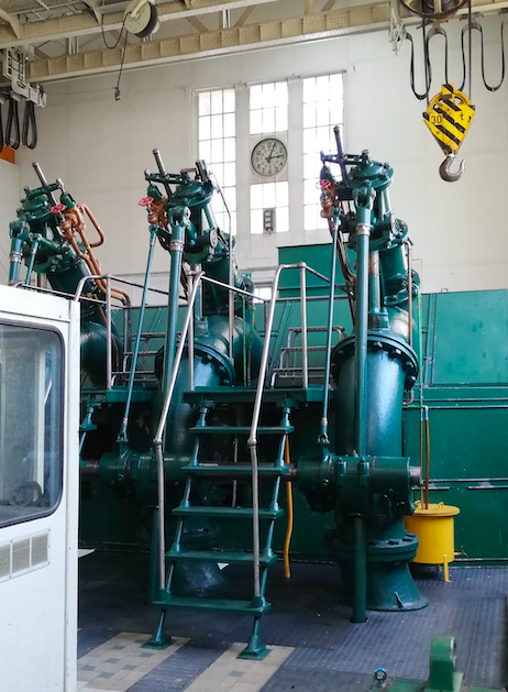 Im Maschinenhaus arbeiten die alten Generatoren und Turbinen störungsfrei bis heute und erzeugen seit dem Bau elektrische Energie für eine Kleinstadt.